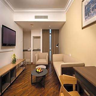 Spacious suite features a separate living room with sofa. With hairdryer. wardrobe and safe box. This unit has a King bed. (Nonsmoking)